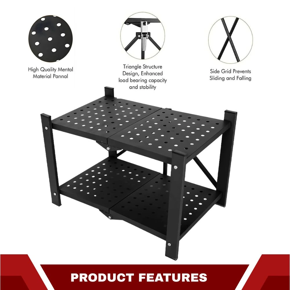 2 TIER FOLDABLE KITCHEN STORAGE RACK | MICROWAVE COUNTERTOP ORGANIZER | HEAVY DUTY KITCHEN SHELF