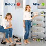 Each tier is spacious enough to hold 3 pairs of adult shoes, or 4 pairs of children’s shoes, accommodating 15 to 20 pairs in total. Its compact and vertical design makes it ideal for entrances, bedrooms and closets — maximizing your floor space while keeping everything neatly organized.